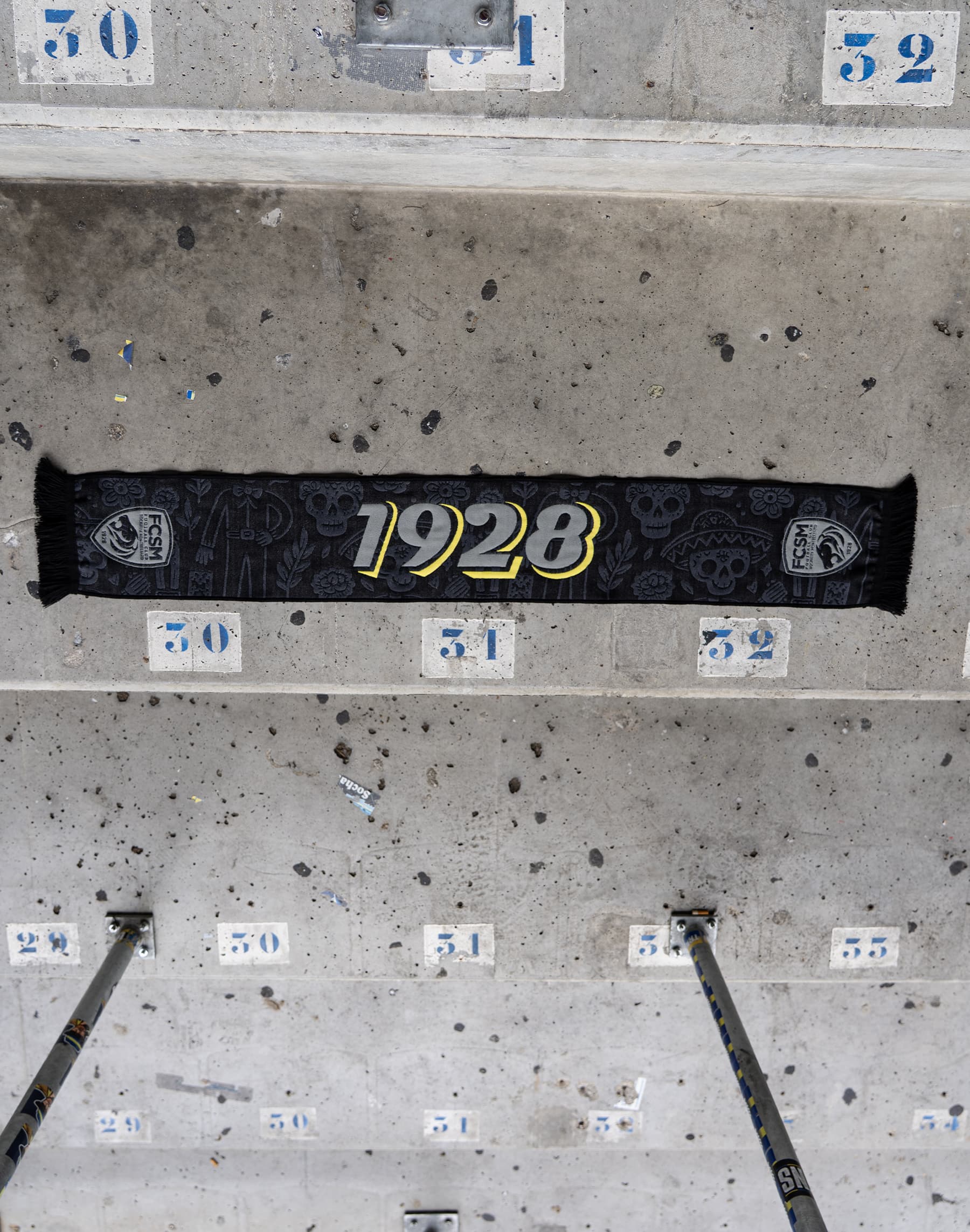 🇲🇽 Entre tradition mexicaine et fierté sochalienne, ses motifs de crânes et de fleurs s’unissent au logo du FCSM et à la date 1928 pour rappeler que la passion du club ne s’éteint jamais, même dans l’obscurité.